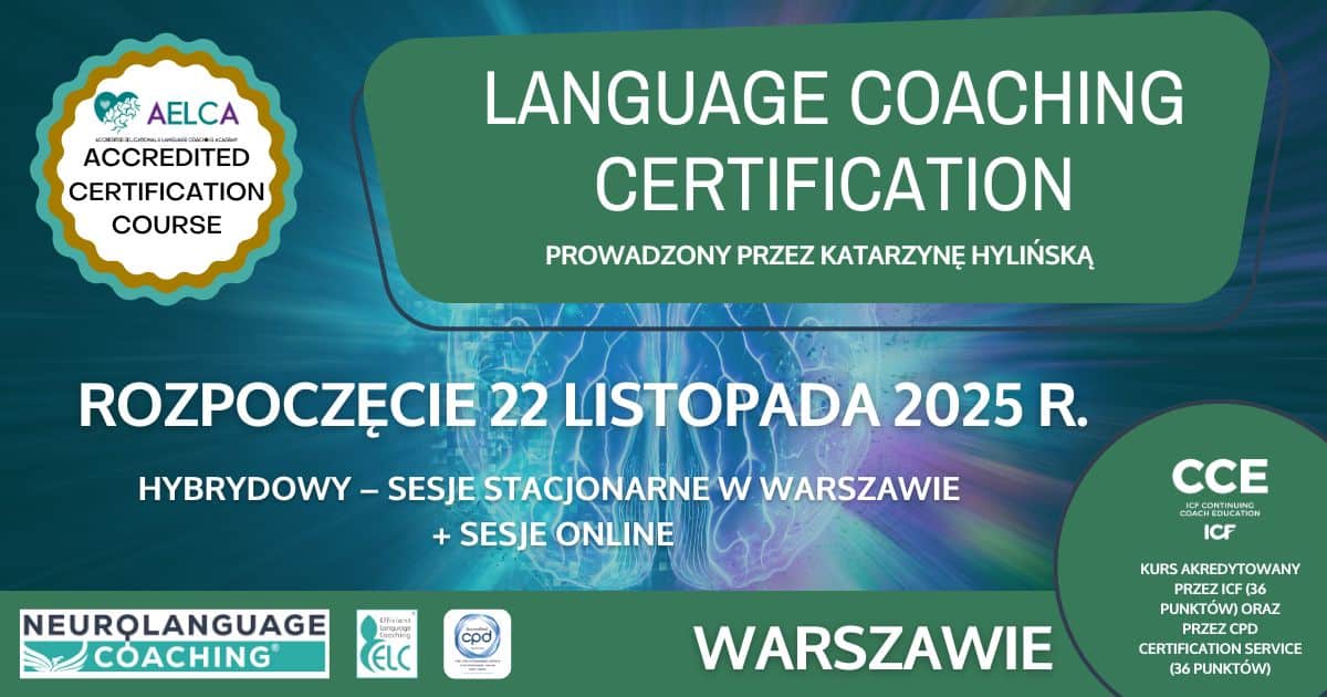Zostań coachem językowym i sprawiaj, aby twoi uczniowie uczyli się jeszcze skuteczniej! Wznieś swoje nauczycielskie kompetencje na wyższy poziom! Zmień swoją ścieżkę zawodową! Z przyjemnością ogłaszamy daty kolejnej edycji programu certyfikacyjnego Language Coaching Certification, który zostanie zrealizowany w języku polskim. Kurs posiada akredytację ICF - International Coach Federation (30 godzin CCE – Continuing Coaching Education plus 6 godzin Resource Development) oraz brytyjską akredytację CPD Certification Service. Optymalnie równoważy teorię i praktykę – tworzy przestrzeń na aktywny coaching, dzięki czemu uczestnicy natychmiast doświadczają uczenia się poprzez działanie i od razu zaczynają praktykować coaching. MODUŁ I – Wprowadzenie do coachingu Pierwszy moduł kursu jest wprowadzeniem [...]