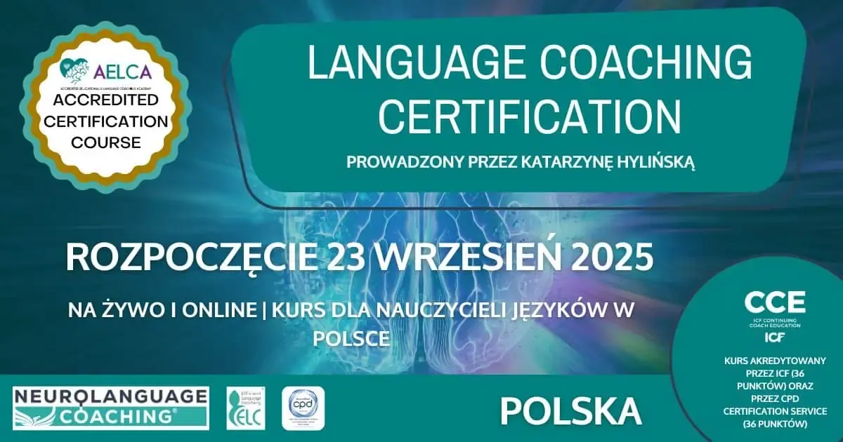 Neurolanguage Coaching Online course for Language Teachers in Poland (delivered in Polish) Sep 23 18:00 - 21:00 Neurolanguage Coaching Online course for Language Teachers in Poland (delivered in Polish)