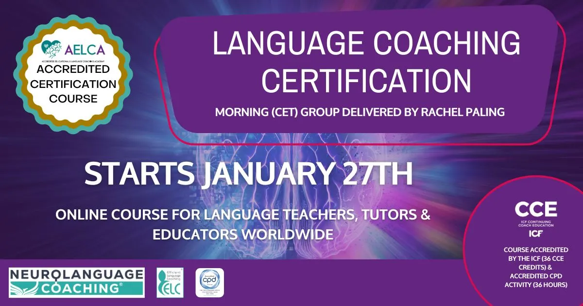 Neurolanguage Coaching Online course for Language Teachers Worldwide MORNING (delivered in English)