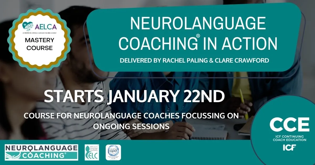 Neurolanguage Coaching in Action Certification – Focus on Ongoing Sessions With the focus on Ongoing Sessions with coachees, this is a mini course of 15 hours. This course provides 15 hours/credits of ICF Continuing Coaching Education (CCE) units. The aim of the course is to really explore: the break down of schedules designing the roadmaps of clients how to categorise mechanical actions how to categorise mastery actions how to perform actions using PACT PQC delivery of ongoing sessions - framework of conversation The course is really designed for more confidence delivering sessions and more awareness of the different types of actions [...]
